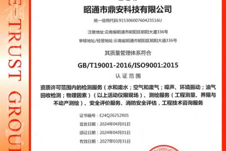 2003年11月10日,昭通市鼎安科技有限公司成立,初始主要從事第三方安全工程技術(shù)服務(wù),經(jīng)多年運營,發(fā)展為多專業(yè)綜合科技平臺,為社會提供多種專業(yè)技術(shù)服務(wù)工作。 現(xiàn)公司注冊資金為1200萬元,公司法定代表人:毛衛(wèi)旭。公司主要業(yè)務(wù):安全評價、安全標(biāo)準(zhǔn)化評審、安全工程技術(shù)服務(wù);環(huán)境監(jiān)測、職業(yè)衛(wèi)生檢測、檢驗;法律訴訟及非訴訟服務(wù);司法鑒定、固定資產(chǎn)投資項目節(jié)能服務(wù);工程咨詢;工程測量測繪;安全教育培訓(xùn)等。是安全生產(chǎn)服務(wù)、安全教育培訓(xùn)機(jī)構(gòu),也是環(huán)境監(jiān)測和職業(yè)衛(wèi)生服務(wù)機(jī)構(gòu),同時也是綜合的檢測檢驗、綜合科技平臺服務(wù)機(jī)構(gòu)。多年來為公、檢、法、司、軍、警、海關(guān)、仲裁、安監(jiān)、工礦商貿(mào)企業(yè)、社會團(tuán)體及個人提供多專業(yè)技術(shù)服務(wù)。